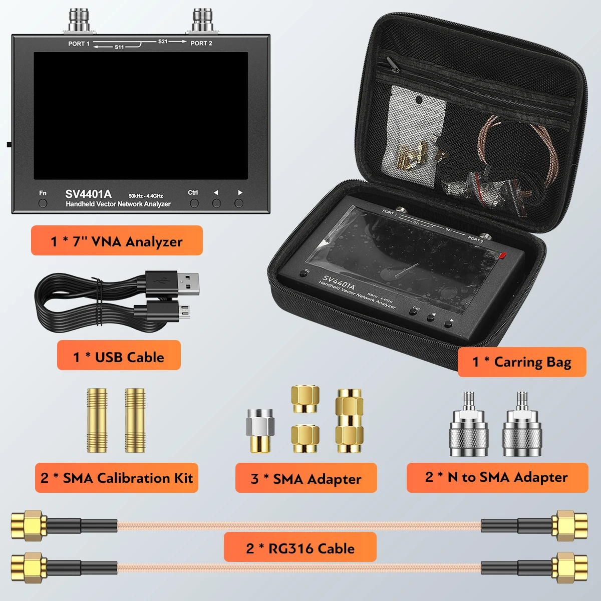 7inch 50KHz-4.4GHz SV4401A Touch LCD NanoVNA VNA Vector Network Antenna Analyzer UHF HF VHF SWR 100db Dynamic Upgrade Version